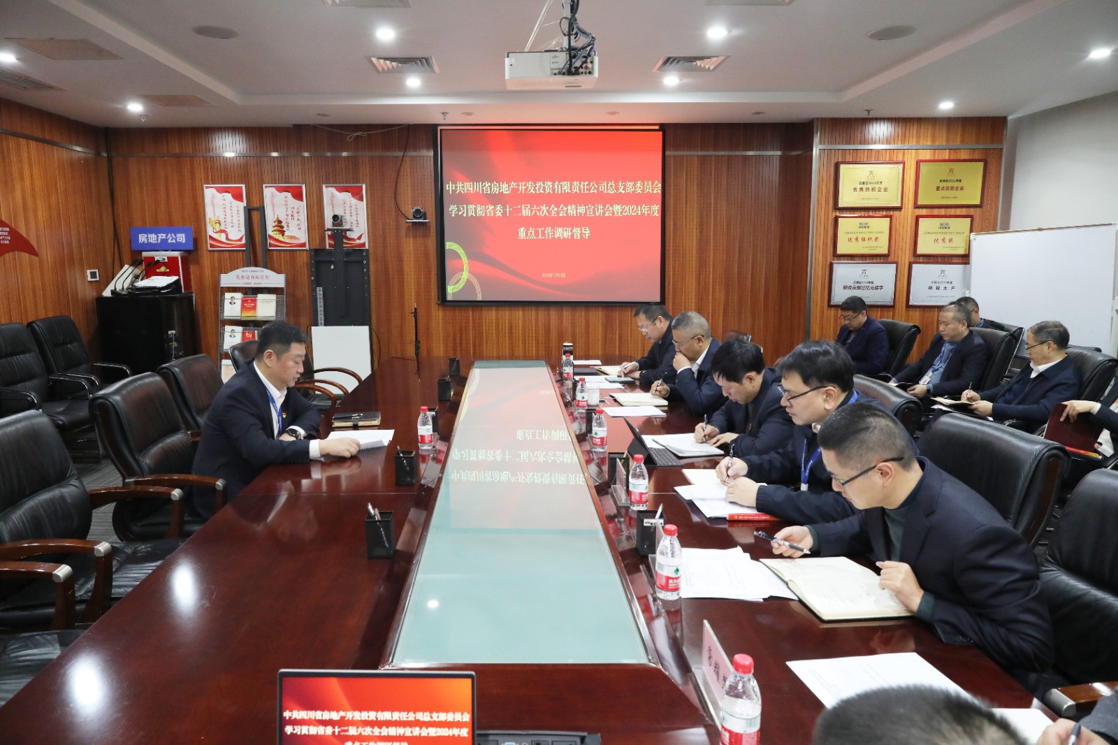 12月3日,川投集團(tuán)財(cái)務(wù)總監(jiān)黃勁在川投房地產(chǎn)宣講省委十二屆六次全會(huì)精神,并調(diào)研督導(dǎo)川投房地產(chǎn)2024年度重點(diǎn)工作完成情況。川投房地產(chǎn)黨總支書記、董事長(zhǎng)龔帝偉主持會(huì)議。