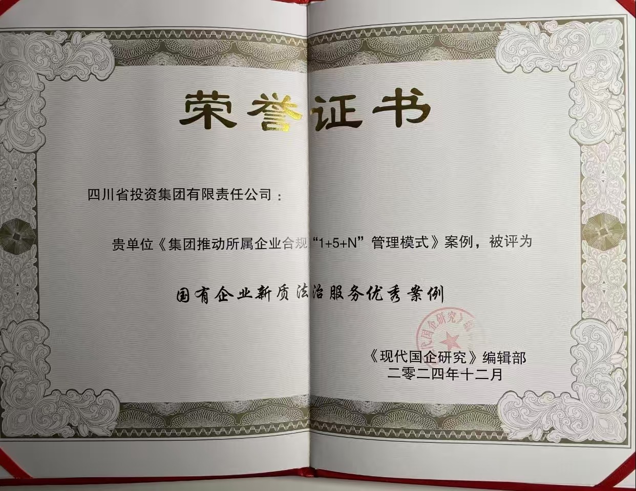 2024年12月15日,由《現(xiàn)代國企研究》雜志主辦、廣西壯族自治區(qū)國資委協(xié)辦的“2024現(xiàn)代國企發(fā)展年會”在北京召開,會上發(fā)布了“國有企業(yè)新質(zhì)法治服務(wù)優(yōu)秀案例”,四川省投資集團有限責(zé)任公司(以下簡稱“川投集團”)榜上有名。