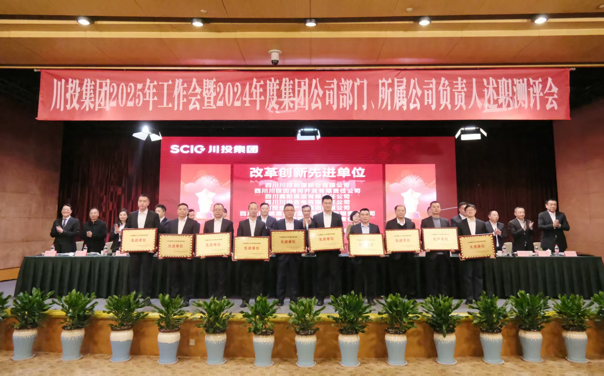會(huì)議表?yè)P(yáng)了川投集團(tuán)2024年度經(jīng)營(yíng)業(yè)績(jī)突出貢獻(xiàn)單位、重點(diǎn)項(xiàng)目先進(jìn)單位、改革創(chuàng)新先進(jìn)單位、基層黨組織結(jié)對(duì)聯(lián)建優(yōu)秀單位、新聞宣傳突出貢獻(xiàn)單位以及托底性幫扶工作先進(jìn)單位。