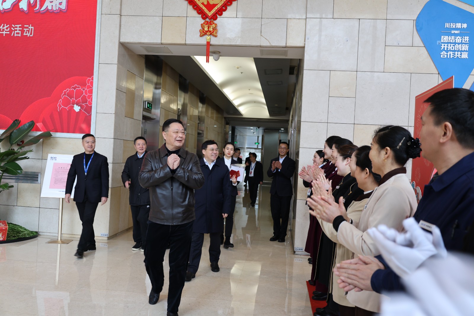 1月26日,集團(tuán)黨委副書(shū)記、副董事長(zhǎng)、總經(jīng)理李文志帶隊(duì)赴川投大廈開(kāi)展新年慰問(wèn)活動(dòng),集團(tuán)公司黨委委員、副總經(jīng)理王懷林陪同。