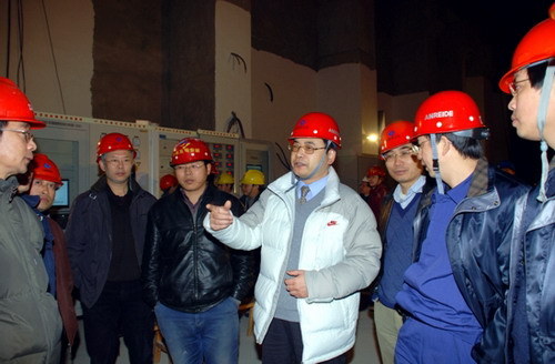 今天上午總經(jīng)理孫志祥冒著凌厲的寒風(fēng)來(lái)到仁宗海電站廠房,指揮田灣河流域梯級(jí)水電站機(jī)組最后一個(gè)轉(zhuǎn)子吊裝?,F(xiàn)場(chǎng)指揮長(zhǎng)向?qū)O志祥總經(jīng)理報(bào)告:起吊準(zhǔn)備工作就緒,請(qǐng)指示。孫志祥總經(jīng)理在詢問(wèn)、檢查、確認(rèn)各項(xiàng)準(zhǔn)備工作后,發(fā)出起吊指令。2008年12月19日10時(shí)12分,260噸重的轉(zhuǎn)子準(zhǔn)確吊入機(jī)組定子中心。