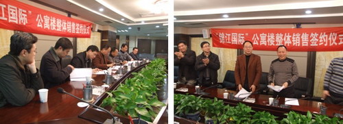 2009年1月19日,雙方在川投集團(tuán)1501室舉行了“錦江國際”公寓樓整體銷售簽約儀式,集團(tuán)公司三產(chǎn)部經(jīng)理梅林、副經(jīng)理薛波等領(lǐng)導(dǎo)代表集團(tuán)公司出席。在友好的氣氛中,房地產(chǎn)公司法人代表王建、委托代理人蔡昌銀與四川宏凌公司法人代表冉衛(wèi)東、委托代理人羅小林共同簽訂了錦江國際項(xiàng)目公寓樓《商品房買賣合同》和《備忘錄》。二月初,已收到宏凌公司支付的第一批購房款。至此,“錦江國際”項(xiàng)目在2009年初成功實(shí)現(xiàn)了公寓樓整體銷售,在全球房地產(chǎn)行業(yè)的隆冬時(shí)節(jié)實(shí)現(xiàn)了開門紅,銷售所得資金將進(jìn)一步確保2009年項(xiàng)目順利完工。