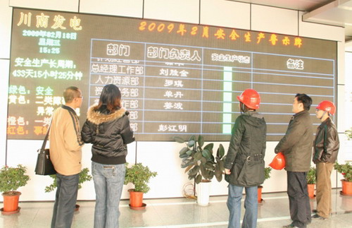 川南發(fā)電公司在辦公樓大廳的電子顯示屏上開設(shè)“安全生產(chǎn)警示牌”,實(shí)時(shí)公示公司和各部門的安全生產(chǎn)情況。除對(duì)安全生產(chǎn)情況良好的部門給予綠牌鼓勵(lì)外,還公示發(fā)生了不安全情況的部門及其負(fù)責(zé)人姓名,根據(jù)不安全情況的種類給予黃牌、橙牌、紅牌警告,將各部門的安全生產(chǎn)情況公之于眾,即鞭策不足,又使其他部門聞警知戒,促進(jìn)安全生產(chǎn)工作。(姜波)