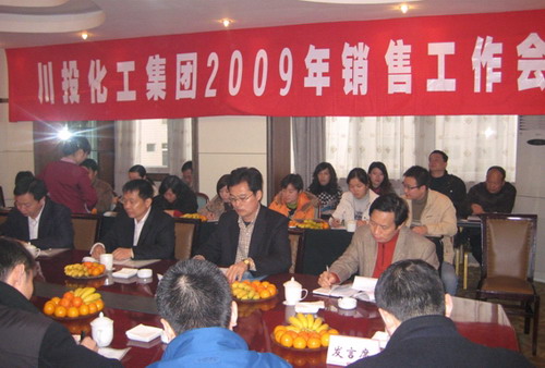近日,川投化工2009年度銷(xiāo)售工作會(huì)在成都太成賓館舉行。公司總經(jīng)理李曉列、副總經(jīng)理王清海、張建強(qiáng),總經(jīng)理助理董德明及銷(xiāo)售部全體工作人員共計(jì)30余人參會(huì)。會(huì)議由銷(xiāo)售部部長(zhǎng)丁文平主持,