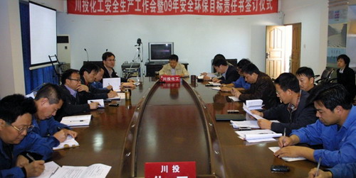 為實(shí)現(xiàn)安全管理的“可控、在控、能控”,近日,川投化工安委會(huì)召開(kāi)了2009年度安全生產(chǎn)工作安排會(huì)暨安全生產(chǎn)、環(huán)保工作目標(biāo)管理責(zé)任書(shū)簽字儀式。公司總經(jīng)理李曉列、副經(jīng)理王清海、張建強(qiáng),總經(jīng)理助理董德明、安委會(huì)成員及各部(室)廠負(fù)責(zé)人共計(jì)20余人參加會(huì)議。會(huì)議由副總經(jīng)理王少甫主持。