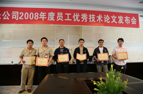 會上,唐書記就本次論文的評審情況作了介紹,總經(jīng)濟師蒲曉東同志宣布2008年度優(yōu)秀論文及作者名單。隨后,公司領(lǐng)導、老專家為獲得優(yōu)秀論文的同志頒發(fā)了獎狀,并對優(yōu)秀論文進行了現(xiàn)場發(fā)布。