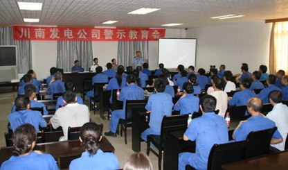公司干部職工聽取了獄警對監(jiān)獄情況的介紹,參觀了服刑人員的監(jiān)室、食堂、禁閉室、勞動區(qū)等場所。隨后,在監(jiān)獄的會議室召開了現(xiàn)場警示教育會。在會上,一名曾是國家事業(yè)單位領(lǐng)導(dǎo)的在監(jiān)服刑罪犯現(xiàn)身說法,講述了自己因放松思想改造和黨紀(jì)法規(guī)學(xué)習(xí),貪一時之財,而身陷圇圄,失去自由,遠(yuǎn)離親人,至今追悔莫急的沉痛教訓(xùn)。應(yīng)川南發(fā)電公司邀請,瀘州市監(jiān)獄的領(lǐng)導(dǎo)向大家作了預(yù)防職務(wù)犯罪教育,從算好人生政治帳、經(jīng)濟(jì)帳、精神帳、名譽(yù)帳、家庭帳、親情帳、健康帳、自由帳等“八筆帳”的角度,告訴大家要奉公守法,遠(yuǎn)離犯罪,珍惜自己的好單位、好工作和自由幸福的生活、大好的發(fā)展前景。