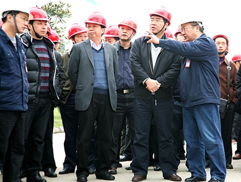 2011年3月24日早9點,四川省安全生產(chǎn)監(jiān)督管理局副局長劉健率省安監(jiān)局安監(jiān)三處處長唐克農(nóng)、副處長何曉燕、省安監(jiān)局審批處專員趙志宏、各市(州)、重點縣(市、區(qū))安全監(jiān)管局分管?;ぷ骶珠L以及部分重點企業(yè)安全工作負責(zé)人等“四川省2010年度危險化學(xué)品、煙花爆炸安全監(jiān)管工作會議”參會人員一行100余人在樂山市政府副秘書長王定軍等陪同下蒞臨新光公司現(xiàn)場參觀指導(dǎo)。