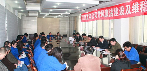 4月1日,四川瀘州川南發(fā)電有限責(zé)任公司召開(kāi)了黨風(fēng)廉潔建設(shè)暨維穩(wěn)工作會(huì)。川南發(fā)電公司領(lǐng)導(dǎo)班子成員、各黨支部書(shū)記、各部門(mén)中干、黨風(fēng)廉潔監(jiān)督員和要害崗位職工代表等參加了會(huì)議。