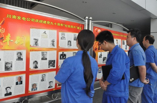 為紀念中國共產(chǎn)黨建黨90周年,川南發(fā)電公司專門訂購《中國共產(chǎn)黨歷史和成就展》、《永遠的豐碑》等資料圖片,在公司舉辦“紅色圖片”宣傳展覽,生動再現(xiàn)中國共產(chǎn)黨領(lǐng)導中國人民進行革命和建設(shè)的奮斗歷程,展示在黨的領(lǐng)導下中國革命和社會主義現(xiàn)代化建設(shè)的輝煌成就,進一步增強廣大黨員、職工建設(shè)公司、發(fā)展公司的信心和決心。(姜波)