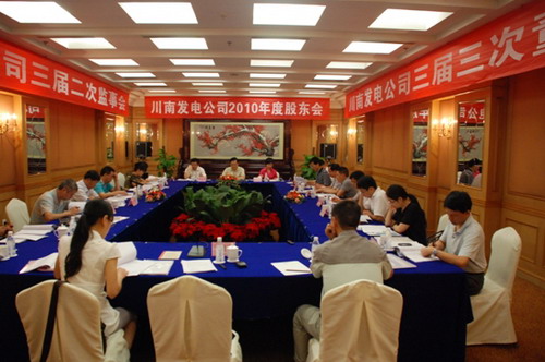 6月12日,川南發(fā)電公司2011年度“三會(huì)”(股東會(huì)、董事會(huì)、監(jiān)事會(huì))在成都召開。會(huì)議由川投集團(tuán)公司副總經(jīng)理、川南發(fā)電公司董事伍康定(受郭勇董事長(zhǎng)委托,代行董事長(zhǎng)職責(zé))主持。川南發(fā)電公司董事郭愛(ài)國(guó)、張維群、肖群英、李勝章、唐得旗,監(jiān)事會(huì)主席任明霞,監(jiān)事鄭世紅、宋詠梅參加會(huì)議。川南發(fā)電公司相關(guān)管理人員譚先明、謝偉平、邱濤、黃松、劉云戈等列席會(huì)議。