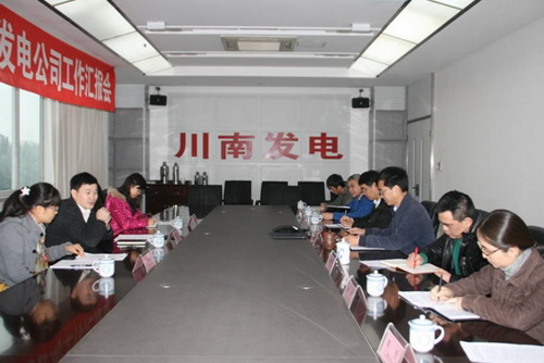在行政樓四樓會議室,川南發(fā)電公司總經(jīng)理李勝章對龐處長一行的到來表示熱烈的歡迎,并介紹了公司的基本情況。隨后,川南發(fā)電公司副總經(jīng)理謝偉平向檢查組匯報了公司2011年和2012年上半年脫硫電價執(zhí)行、財務(wù)成本、生產(chǎn)經(jīng)營等情況,反映了公司發(fā)電形勢嚴峻、機組負荷率低、融資壓力較大等實際困難,建議提高燃用高硫煤火電企業(yè)的脫硫電價、盡快落實水火替代電量補貼、提高火電機組發(fā)電負荷率、增加電煤“豐存枯用”補貼額度、完善電量跨省跨區(qū)交易制度,從而幫助川南發(fā)電公司乃至四川火電企業(yè)走出生存困境。總經(jīng)理李勝章、常務(wù)副總經(jīng)理李萬富就公司煤源結(jié)構(gòu)、機組利用小時數(shù)、煤耗、節(jié)能排序等問題作了補充。