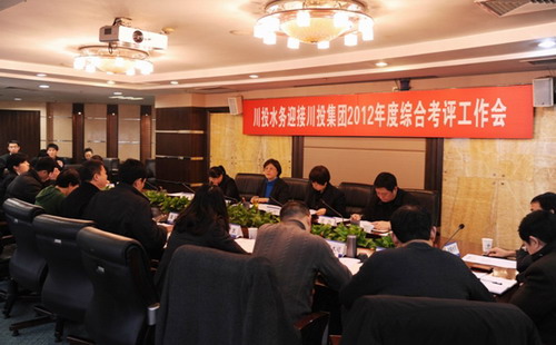 2013年1月11日上午,川投集團(tuán)副總經(jīng)理劉曉揚(yáng)率黨群部副主任王軍、財(cái)務(wù)部副經(jīng)理黃勁、人力資源部楊坤一行在川投大廈1501會(huì)議室召開會(huì)議,對(duì)川投水務(wù)2012年領(lǐng)導(dǎo)人員、委派財(cái)務(wù)人員及黨建、紀(jì)檢等工作進(jìn)行綜合考評(píng)。川投水務(wù)經(jīng)營(yíng)班子、本部全體員工和所屬公司有關(guān)負(fù)責(zé)人、員工代表近40人參加了會(huì)議。