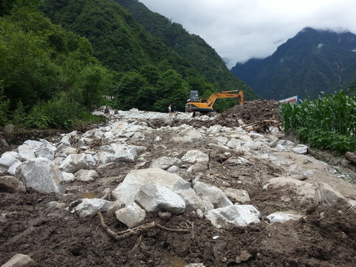 經(jīng)全面組織協(xié)調(diào),6月21日上午10時30分,陰山溝泥石流路段泥石流清通;下午16時10分,仁宗海電站10kv I段母線和界碑石變電站恢復供電。6月22日中午,唐家溝處公路段搶通,和平村村口等公路段邊坡垮塌處和唐家溝橋涵處已設(shè)置安全警示標示。按照“全啟動、先保通、再治理”的道路搶通原則,公司協(xié)調(diào)在電站現(xiàn)場的煌程公司和石棉興達公司、子豪公司等單位組織機具全部加入道路清理和搶通工作,以盡快恢復公路交通。