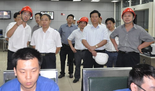 8月13日,瀘州市委書(shū)記蔣輔義、市委副書(shū)記曹建國(guó)、常務(wù)副市長(zhǎng)曹俊杰、市委常委、政法委書(shū)記陳文、副市長(zhǎng)曹勇率市發(fā)展改革委、市經(jīng)濟(jì)和信息化委、市財(cái)政局、市國(guó)土資源局、市住建局等單位主要負(fù)責(zé)人,到川南發(fā)電公司調(diào)研,了解關(guān)心公司生產(chǎn)經(jīng)營(yíng)、企業(yè)發(fā)展等情況。圖為在2×600兆瓦級(jí)組集控室,瀘州市委書(shū)記蔣輔義(左二)、市委副書(shū)記曹建國(guó)(右二)聽(tīng)公司領(lǐng)導(dǎo)匯報(bào)機(jī)組發(fā)電運(yùn)行情況。