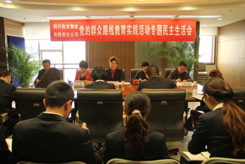 根據(jù)中央、省委關(guān)于開展黨的群眾路線教育實(shí)踐活動(dòng)的總體部署,按照集團(tuán)公司黨的群眾路線教育實(shí)踐活動(dòng)領(lǐng)導(dǎo)小組及其辦公室的具體要求,佳友物業(yè)公司于2013年11月19日召開了黨的群眾路線教育實(shí)踐活動(dòng)專題民主生活會(huì)。會(huì)議圍繞保持黨的先進(jìn)性和純潔性,按照“照鏡子、正衣冠、洗洗澡、治治病”的總要求,以“反對(duì)四風(fēng)、服務(wù)群眾”為重點(diǎn),緊密結(jié)合佳友物業(yè)公司實(shí)際、領(lǐng)導(dǎo)干部的思想和作風(fēng)建設(shè)實(shí)際情況,深入查擺存在的突出問題,認(rèn)真解決形式主義、官僚主義、享樂主義和奢靡主義等“四風(fēng)”問題,開展批評(píng)與自我批評(píng),促使黨員領(lǐng)導(dǎo)干部牢固樹立宗旨意識(shí)、馬克思主義群眾觀點(diǎn),切實(shí)改進(jìn)工作作風(fēng)。