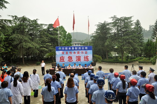 “報告梁總,四川川投水務(wù)集團射洪有限責(zé)任公司突發(fā)性水質(zhì)污染應(yīng)急演練各項工作準(zhǔn)備就緒,請指示。”
