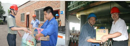 進(jìn)入7月以來(lái),瀘州地區(qū)連晴高溫,熱浪襲人。川投集團(tuán)、川南發(fā)電公司十分牽掛戰(zhàn)斗在高溫酷暑中的一線干部職工。集團(tuán)公司專門下?lián)芰?#8220;送清涼”慰問(wèn)金,委托川南發(fā)電公司代購(gòu)防暑用品發(fā)給一線職工;川南發(fā)電公司也特地為生產(chǎn)一線職工購(gòu)買了脈動(dòng)、冰糕等清涼消署飲品。5日下午3時(shí),公司總經(jīng)理李勝章、黨委書(shū)記唐得旗、工會(huì)主席黃松先后來(lái)到集控室、6.9m汽機(jī)頂軸油泵、#1爐給煤機(jī)以及煤場(chǎng)采制樣班組等工作現(xiàn)場(chǎng),將防暑品送到奮戰(zhàn)在一線的職工手上,并一一問(wèn)候“辛苦了!”,叮囑大家搞好防暑降溫工作,保證安全生產(chǎn)。