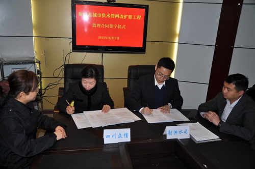 2015年3月11日,射洪水司在公司二樓會(huì)議室舉行了射洪縣城市供水管網(wǎng)改擴(kuò)建工程(老城區(qū))施工合同簽字儀式。3月12日,按照法定程序與四川省眾信建設(shè)工程監(jiān)理有限公司簽訂射洪縣城市管網(wǎng)改擴(kuò)建工程(老城區(qū))監(jiān)理合同。本工程目前正式進(jìn)入施工階段。