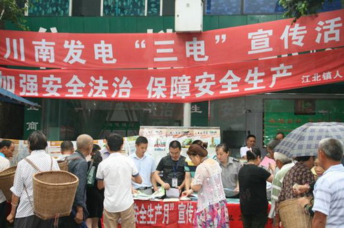 6月30日上午,川南發(fā)電公司會(huì)同江北鎮(zhèn)政府、當(dāng)?shù)嘏沙鏊诮辨?zhèn)聯(lián)合開展了三電設(shè)施保護(hù)宣傳及電力設(shè)施防破壞活動(dòng)。