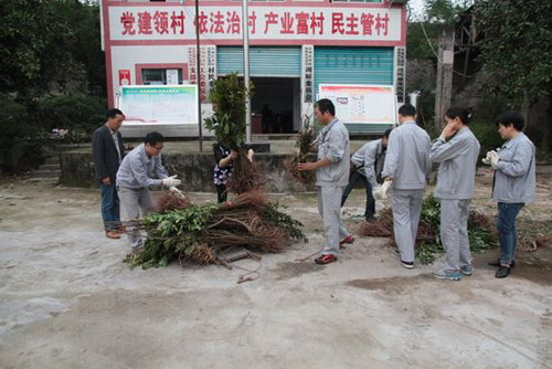 紅花村村委會(huì)門前,公司黨委副書記姚欣和紅花村村委領(lǐng)導(dǎo)依次將香椿樹苗發(fā)放到登記在冊(cè)的貧困戶手中,希望大家搞好農(nóng)業(yè)生產(chǎn),栽種好樹苗,認(rèn)真做好日常管護(hù),爭(zhēng)取讓樹苗早日長(zhǎng)成為“致富樹”, 貧困村民早日脫貧致富奔小康。