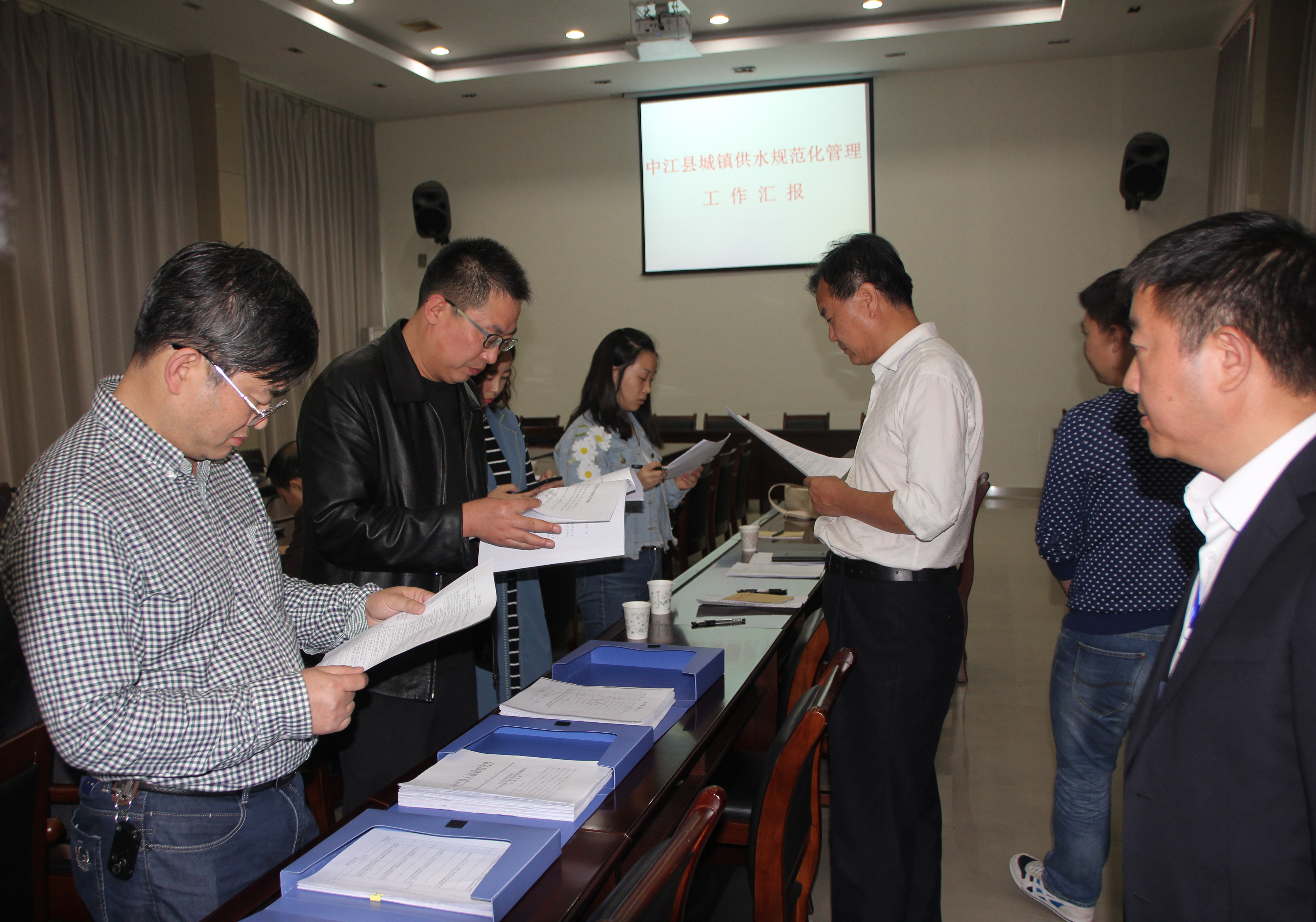 隨后,考核組一行來到縣政府會議室現(xiàn)場查閱了規(guī)劃建設(shè)、運(yùn)行監(jiān)管、水廠運(yùn)行與管理、管網(wǎng)運(yùn)行與管理、供水服務(wù)、應(yīng)急管理等資料,中江供排水公司總經(jīng)理朱禹向考核組詳細(xì)介紹了川投中江公司城鎮(zhèn)規(guī)范化管理工作情況,中江縣委副書記、縣政府代理縣長李霞就中江縣城鎮(zhèn)供水規(guī)范化管理相關(guān)工作開展情況進(jìn)行了詳細(xì)匯報。