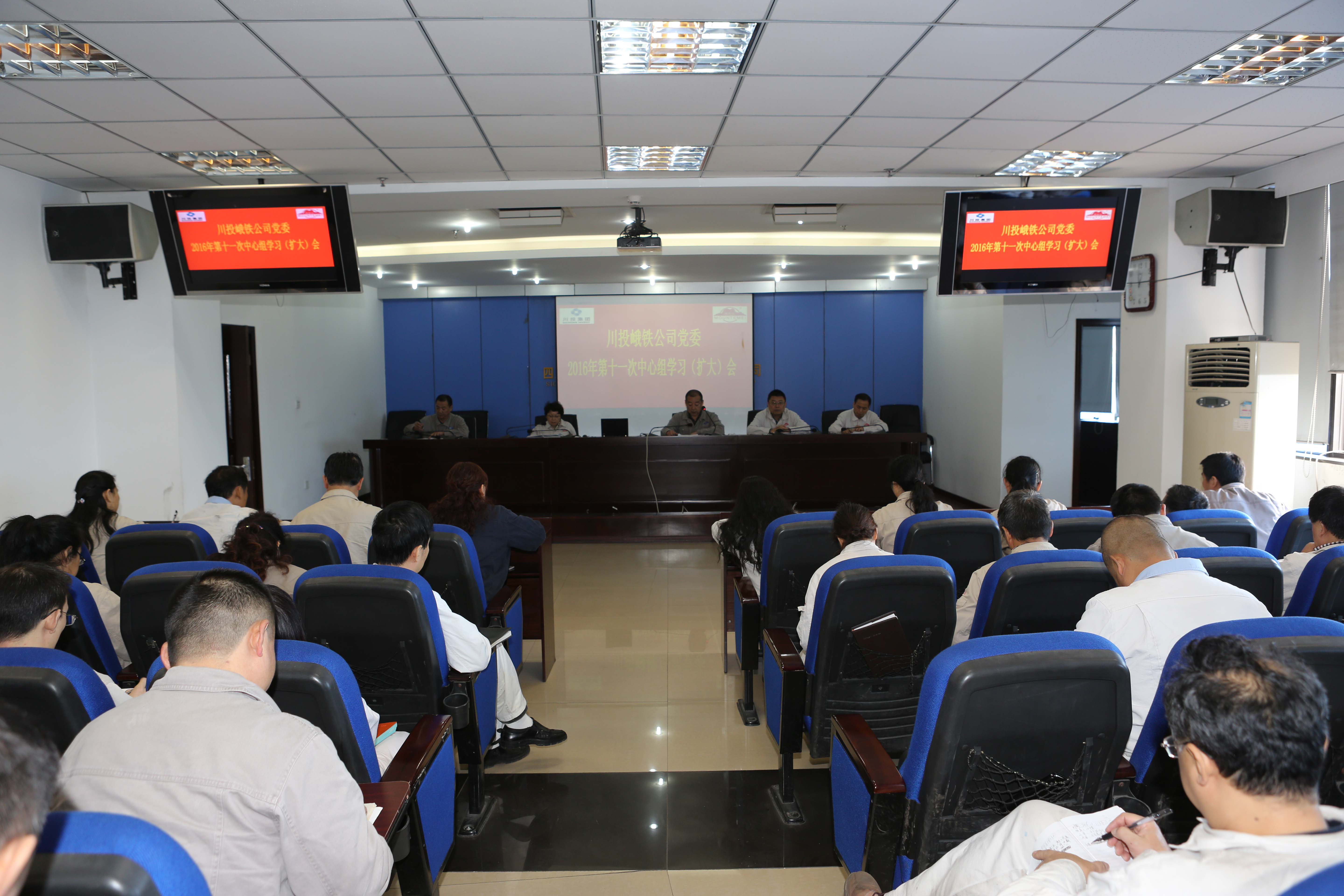 10月31日,川投峨鐵公司黨委在公司1011會議室召開第十一次中心組學習(擴大)會, 集中傳達學習近平總書記在紀念紅軍長征勝利80周年大會和國有企業(yè)黨建工作會上的講話精神以及《中國共產黨第十八屆中央委員會第六次全體會議公報》等內容,公司領導、中層管理人員及后備干部61人參加了學習會。