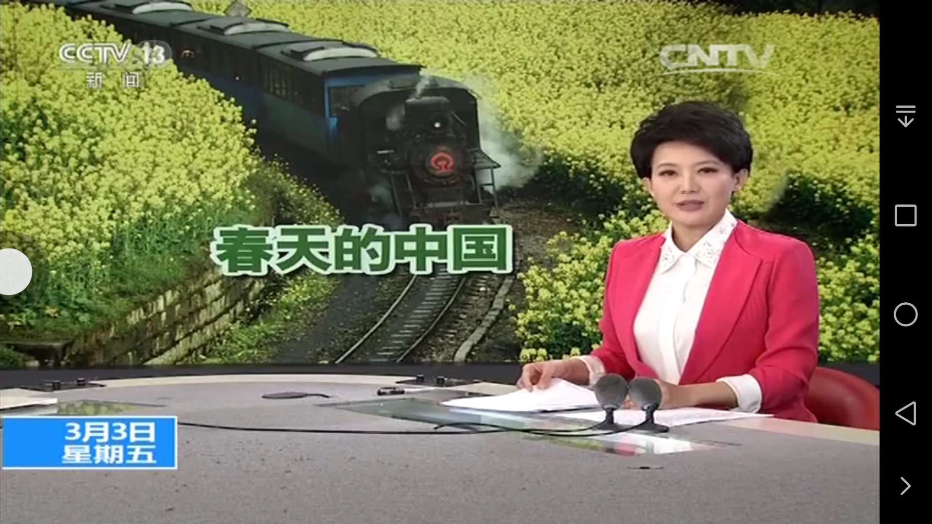 當日上午10點20分,央視新聞客戶端、移動網(wǎng)就用近40分鐘的時間全程直播了嘉陽小火車蜜蜂巖掉頭、車廂內(nèi)末代晃舞以及穿越油菜花海等主題畫面;中午11點,中央電視臺新聞頻道(CCTV-13)《新聞直播間》以嘉陽小火車穿越油菜花海畫面為主題背景播出特別節(jié)目《春天的中國》,并用兩分鐘的時長介紹了這趟開往春天的懷舊浪漫之旅;3月4日上午,央視1套和13套并機播出的《朝聞天下》再度播出小火車穿越油菜花海以及噴射蒸汽營造彩虹的經(jīng)典鏡頭。
