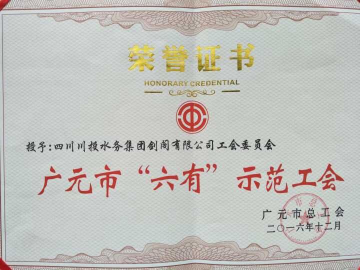 2016年以來,川投水務(wù)劍閣水司會認(rèn)真按照習(xí)近平總書記“三個著力”要求,貫徹落實“三滿意”經(jīng)營宗旨,廣泛開展“六有”工會建設(shè)和“雙爭”活動,全面推進(jìn)“基層工會建設(shè)落實年”活動,各項部署落地見效,充分發(fā)揮組織動員職工、教育引導(dǎo)職工、聯(lián)系服務(wù)職工和維護(hù)職工合法權(quán)益的重要作用。近期,被廣元市總工會評為“六有示范工會”單位。