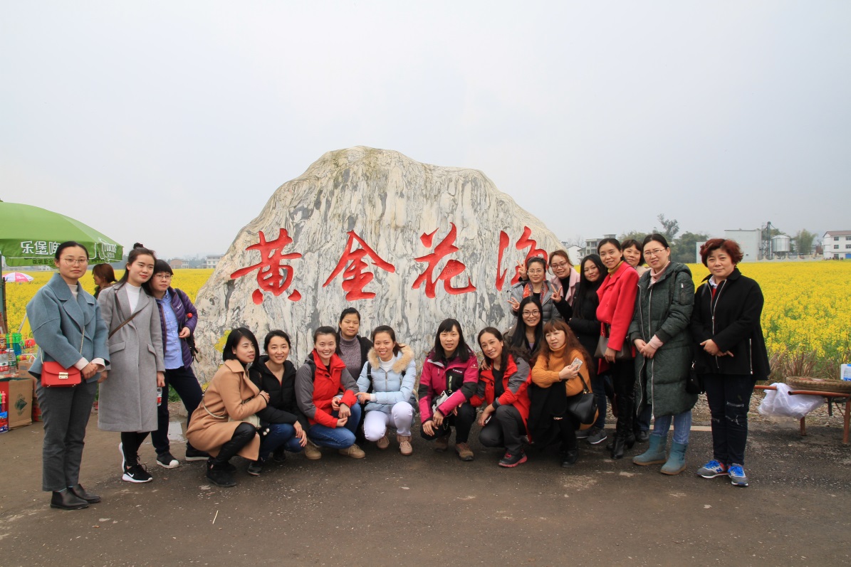本次春游的目的地是前往素有“川東小平原”之稱的開江,參加“四川.開江首屆油菜花節(jié)”。一路上20名姐妹們全然沒有午后倦意,歡聲笑語,享受著節(jié)日歡愉。一到目的地,姐妹們立刻被眼前美景驚呆了,一望無垠的油菜花大約有數(shù)千畝,一片金黃,讓整個田野成了花的海洋。微風拂過,油菜花搖動著纖細的腰肢,仿佛是在歡迎四方賓客。本次油菜花節(jié)不僅可以暢游花海,還可以欣賞創(chuàng)意草雕藝術展、美食品鑒、土特產(chǎn)商品展、攝影作品展等,現(xiàn)場人頭攢動,好不熱鬧。姐妹們或蹬車、或徒步、或花海留影……盡情呼吸著花香,感受大自然的愜意,陶醉在萬畝“黃金花海”中。