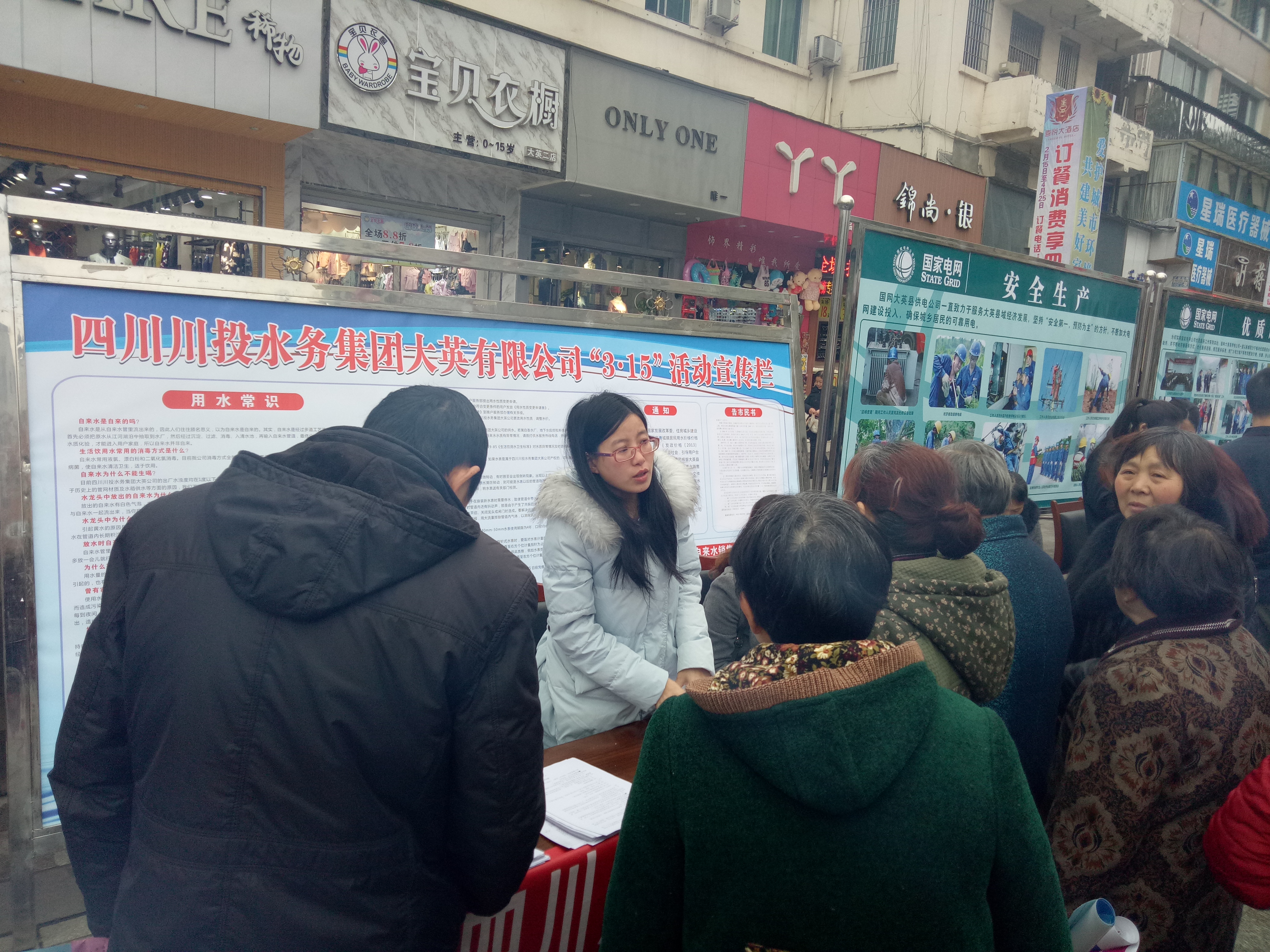 川投水務(wù)榮縣氣司、名山氣司、射洪水司、大英水司、劍閣水司、榮縣水司、中江供排水公司在城區(qū)設(shè)立了“3•15”宣傳站點(diǎn),擺放了專題宣傳展板,組織專業(yè)技術(shù)人員和窗口服務(wù)人員到宣傳活動現(xiàn)場介紹正確的用水用氣方法并對群眾反映和咨詢的熱點(diǎn)問題進(jìn)行現(xiàn)場答疑解惑,同時向群眾發(fā)放消費(fèi)者維權(quán)相關(guān)法規(guī)政策、安全用水用氣常識等宣傳資料。