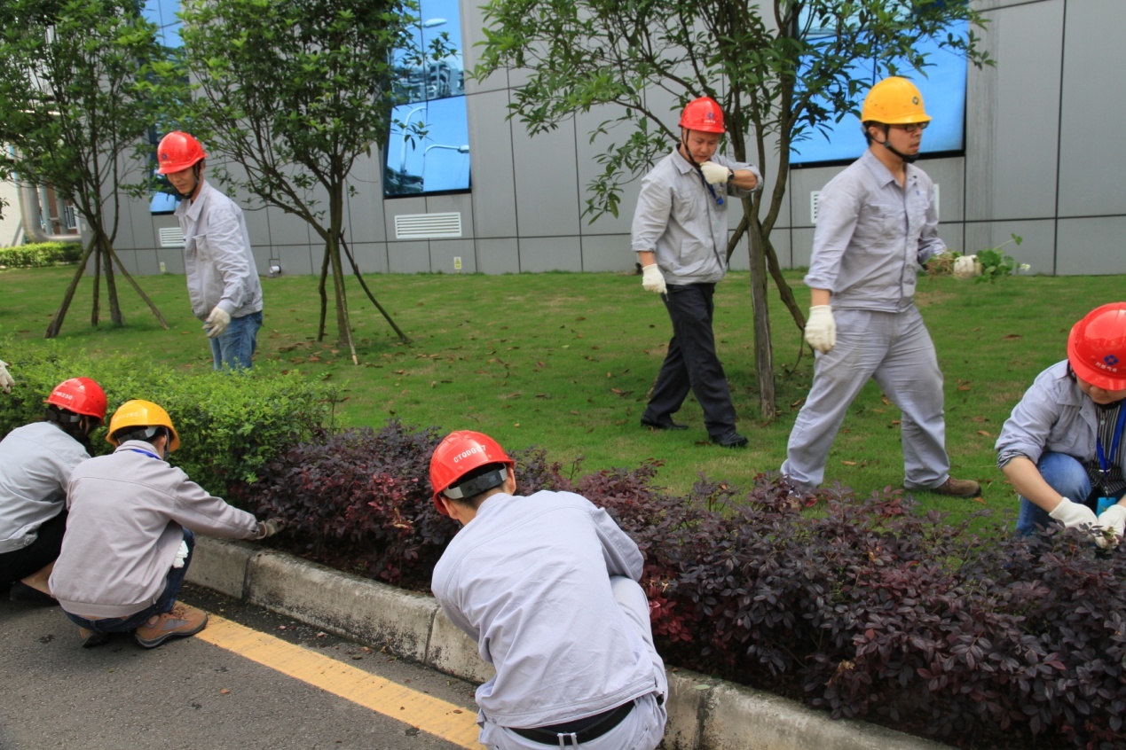 上午11點,川投氣電的一群青年員工聚集在辦公樓一樓大廳,來到廠區(qū)化學樓前的草坪,大家一起清除草坪上的雜草。微風拂面,陽光照耀,青草的芳香夾雜著泥土的氣息撲面而來,瞬間神清氣爽。大家一邊拔草,一邊交流,互相聊一聊工作情況,生活中的困難。大家說著笑著,呈現(xiàn)出一片愉悅祥和的場面。