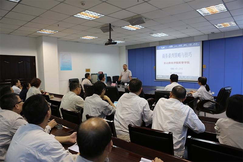 為進(jìn)一步提升川投峨鐵公司營銷管理人員的商務(wù)談判能力及職業(yè)素養(yǎng),增強(qiáng)公司市場競爭力,9月8日,川投峨鐵公司舉辦商務(wù)談判培訓(xùn)班,邀請樂山師范學(xué)院經(jīng)管學(xué)院副院長、管理學(xué)教授楊小川作《商務(wù)談判策略與技巧》專題培訓(xùn)。川投峨鐵在家公司領(lǐng)導(dǎo)、財(cái)務(wù)處、供銷公司、企劃發(fā)展處、辦公室部門負(fù)責(zé)人以及業(yè)務(wù)人員共42人參加了培訓(xùn)。