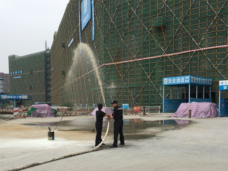 本次消防安全演練主要包含兩個科目,第一個科目是使用手提式干粉滅火器對明火進行撲滅,參加演練的安保人員手提滅火器快速奔赴起火地點,在距明火適中的位置放下滅火器,打開鉛封,拔掉保險銷,左手拿噴管對準(zhǔn)明火,右手提壓把手持續(xù)按壓,將火撲滅;第二個科目是安保人員相互配合使用消火栓進行滅火,一人打開消火栓后取出消防水帶向起火點方向拋出,然后將消防水帶的一頭與閥門連接,另一人則接好槍頭和消防水帶奔向起火點,站定后通知后方打開閥門并將槍頭對準(zhǔn)起火點進行滅火。