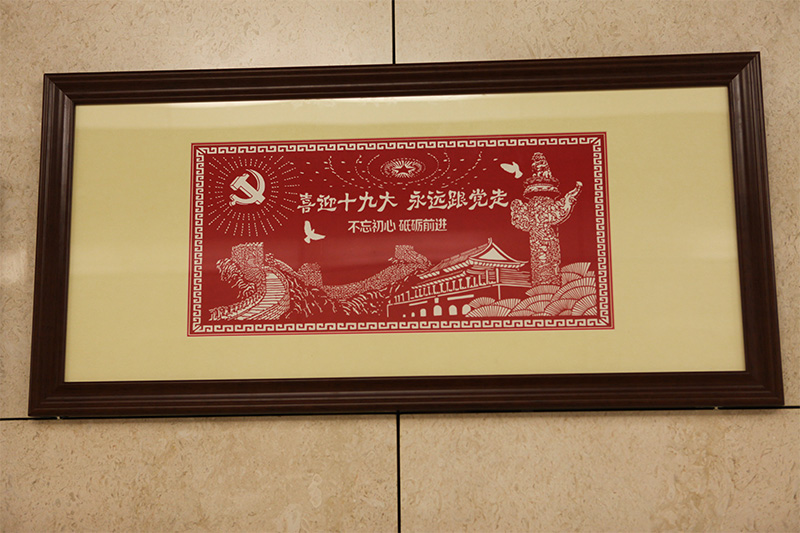 近日,一份特殊的“禮物”——由天彭電力員工莊叢燦自行構(gòu)思、精心創(chuàng)作的剪紙作品《獻禮十九大,永遠跟黨走》掛在了錦江國際大廈6樓川投能源的醒目位置,表達了基層員工對黨的感恩之情和對十九大的美好祝愿。