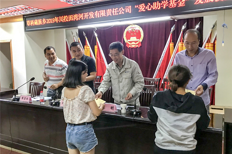田灣河公司作為草科鄉(xiāng)轄區(qū)范圍內(nèi)企業(yè),始終將企業(yè)經(jīng)濟(jì)效益與社會(huì)責(zé)任相結(jié)合,以 “三個(gè)回報(bào)”為企業(yè)“初心”,心系地方發(fā)展。經(jīng)與石棉縣、草科鄉(xiāng)兩級(jí)政府協(xié)商,公司自2015年開始設(shè)立了“愛心助學(xué)基金”,面向全鄉(xiāng)品學(xué)兼優(yōu)貧困學(xué)子開展愛心助學(xué)活動(dòng)。同時(shí),公司積極對(duì)接草科鄉(xiāng)中心小學(xué),開展了“六一”兒童節(jié)定期互動(dòng),協(xié)助小學(xué)解決教職工生活困難。