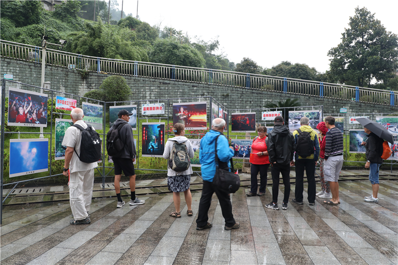 此次攝影展展出地點(diǎn)分別設(shè)在礦山公園主碑廣場和電影院多功能廳,展覽將持續(xù)到國慶節(jié)后。9月24日早上,一群前來乘坐嘉陽小火車的捷克游客駐足攝影展前,饒有興致地觀看影展,特別對(duì)嘉陽小火車風(fēng)光照片連聲稱贊拍手叫絕。