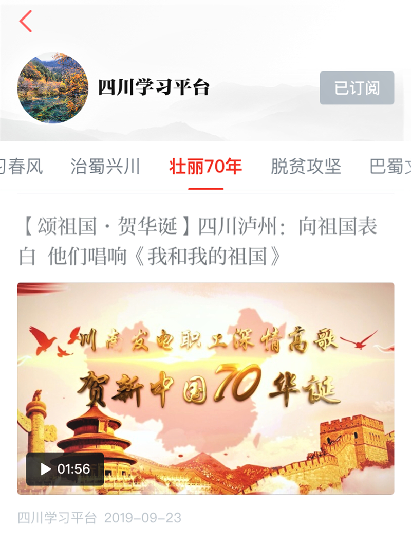 9月23日,川南發(fā)電拍攝的獻禮新中國成立70周年MV《我和我的祖國》在“學習強國”平臺公開展示。