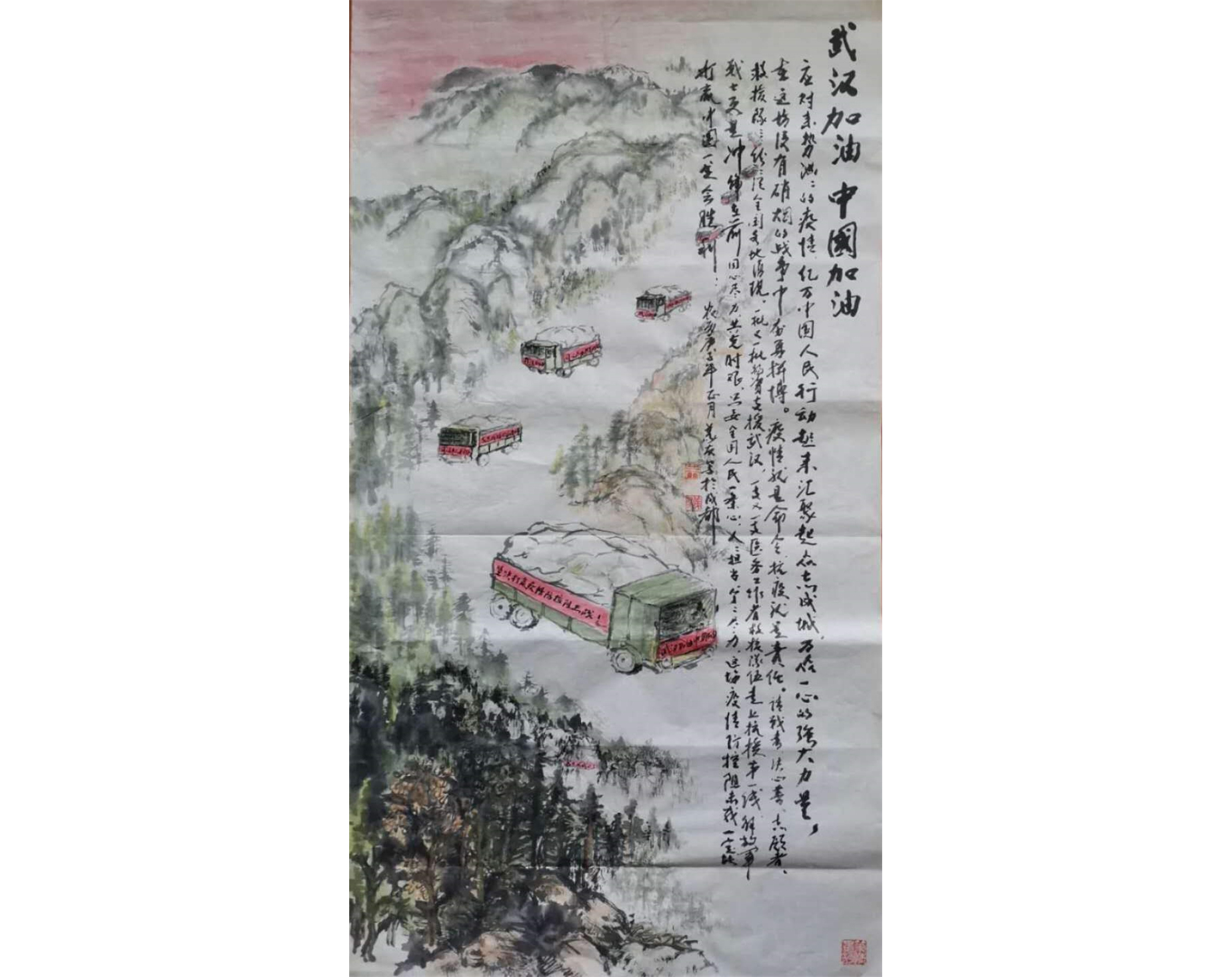 在這些作品的作者中,有八十多歲的宏明廠退休黨員,也有職工家中五六歲的小朋友……他們或拿起畫筆記錄下醫(yī)護(hù)人員、基層干部等“最美逆行者”感人瞬間,或揮毫繪就起全國(guó)各地傾力籌備物資支援武漢抗疫的“鋼鐵長(zhǎng)城”,或用稚嫩的海報(bào),嘶吼出全體炎黃子孫的心聲:“武漢加油!中國(guó)加油!”