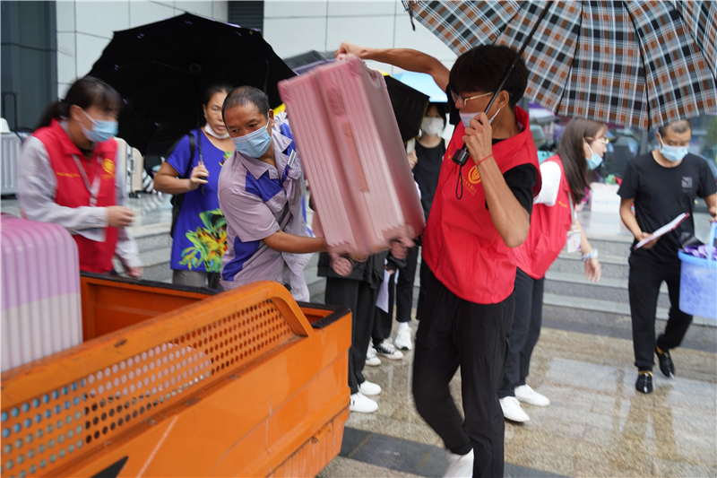 肩扛手提,步履匆匆……40余名志愿者積極參與迎新工作,為新生指引道路、介紹校園環(huán)境,協(xié)助新生辦理報到手續(xù)、搬運行李。新生們也展現(xiàn)出新時代大學生獨立自主的優(yōu)秀品質(zhì),在對熱情的志愿者表示感謝與贊揚之余,充分理解志愿者的辛苦,盡量減少志愿者的負擔。在問候聲、講解聲與道謝聲中,新生與志愿者們一起經(jīng)歷了“成長與獨立”。