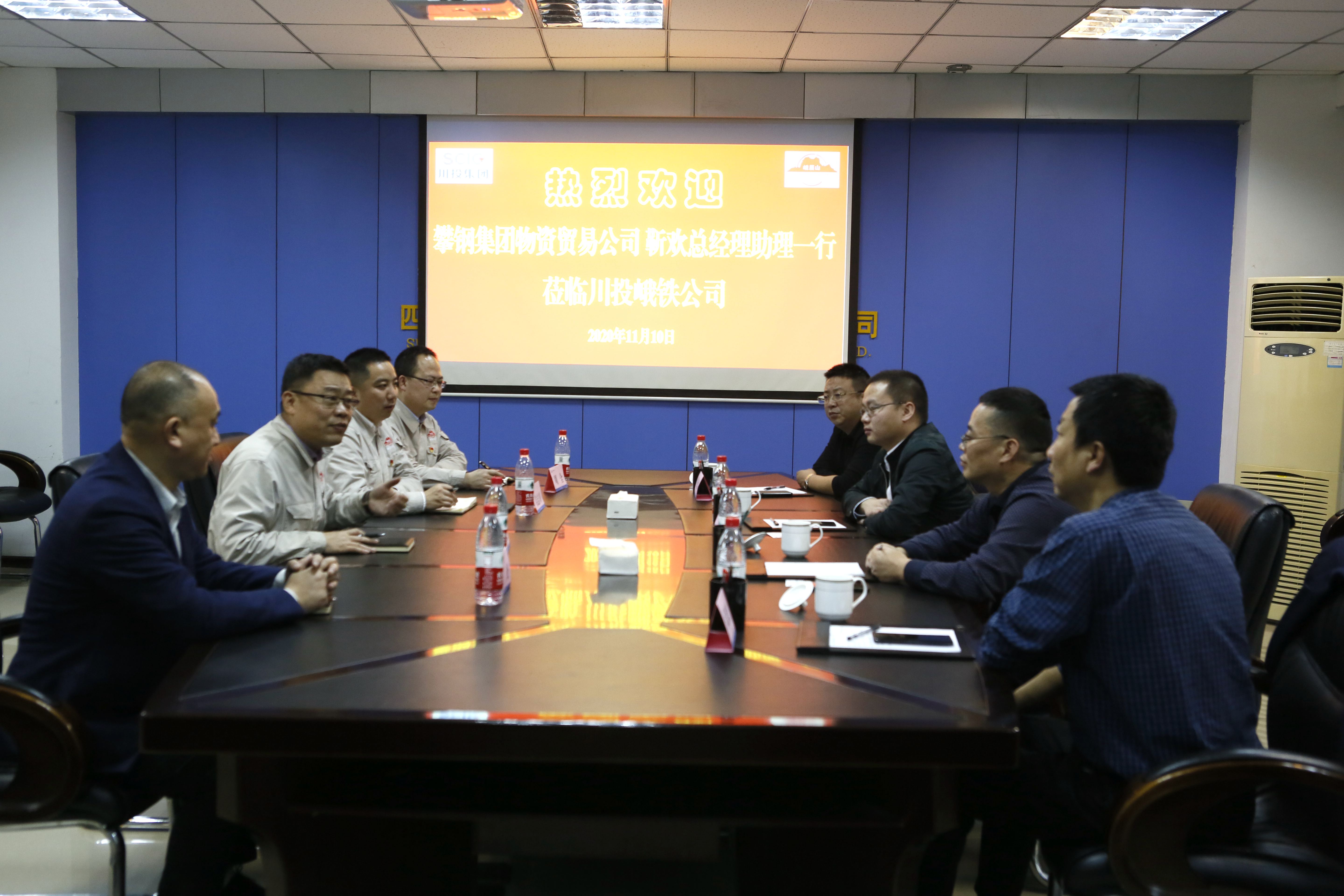 11月10日,川投峨鐵公司黨委副書記、總經(jīng)理陳新龍在公司908會議室會見了攀鋼集團物貿(mào)公司(以下簡稱攀鋼公司)總經(jīng)理助理靳歡一行。雙方就戰(zhàn)略合作框架協(xié)議推進和業(yè)務(wù)布局進行了深入交流。公司副總經(jīng)理姜志川、營銷總監(jiān)周全以及供銷公司相關(guān)人員參加座談會。