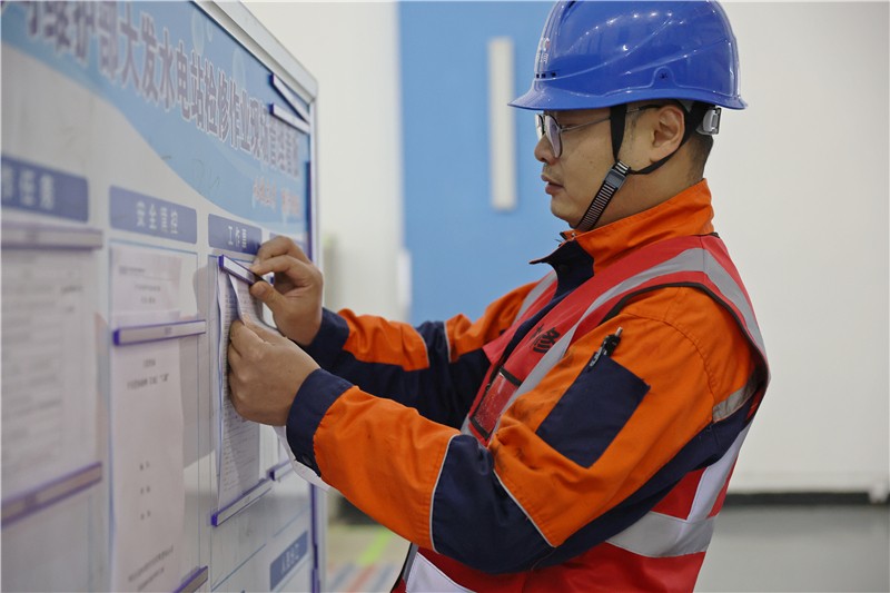 檢修工作組深入對(duì)照分析,以“三個(gè)落實(shí)”為切入點(diǎn),多措并舉做好汛后檢修安全保障。一是落實(shí)工作職責(zé)。提前梳理設(shè)備缺陷、檢修項(xiàng)目,由工作組負(fù)責(zé)人總體組織協(xié)調(diào),各工作面專(zhuān)業(yè)技術(shù)人員分別負(fù)責(zé),將檢修任務(wù)分解落實(shí)到崗、落實(shí)到人。同時(shí),檢修現(xiàn)場(chǎng)張貼工作清單,實(shí)時(shí)更新清單完成進(jìn)度、執(zhí)行人員等信息,實(shí)現(xiàn)現(xiàn)場(chǎng)進(jìn)度可視化。二是落實(shí)安全責(zé)任。本次檢修作業(yè)人員統(tǒng)一穿著反光警示背心,用不同顏色區(qū)分工作負(fù)責(zé)人、安全員、起重指揮、工作成員角色,進(jìn)一步落實(shí)安全職責(zé)細(xì)化到崗,全面提升人員安全意識(shí)和檢修隊(duì)伍作業(yè)形象。三是落實(shí)風(fēng)險(xiǎn)防控?!?/span>9?5”瀘定地震后,流域三站廠區(qū)道路時(shí)常發(fā)生塌方、飛石等災(zāi)害,為有效降低道路交通風(fēng)險(xiǎn),檢修工作組調(diào)整通勤模式,到站檢修人員原則中午駐站,站上就餐,減少了道路往返頻次,增加了檢修工作時(shí)間,有效助推汛后檢修提速、提效。