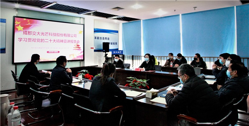 會上,劉成輝代表交大光芒領(lǐng)導(dǎo)班子作交流發(fā)言,他表示,學(xué)習(xí)宣傳貫徹黨的二十大精神是當(dāng)前和今后一個時期的首要政治任務(wù),公司黨員干部要繼續(xù)全面、系統(tǒng)、深入學(xué)習(xí)領(lǐng)會黨的二十大精神,爭做學(xué)習(xí)宣傳貫徹黨的二十大精神的排頭兵 ,從宣講中感悟汲取思想偉力,在既有的學(xué)習(xí)基礎(chǔ)上更加堅持扎實學(xué)、原本讀、認(rèn)真悟,將二十大精神轉(zhuǎn)化為推動各方面工作的實際行動。要從黨的二十大精神中找準(zhǔn)方向和定位,堅定發(fā)展信心,搶抓政策機遇,加快“科創(chuàng)光芒”黨建品牌培育,加大公司研發(fā)費用的投入力度、技術(shù)研發(fā)的創(chuàng)新力度、人才的引進力度,加快成果轉(zhuǎn)化速度,打牢企業(yè)創(chuàng)新基礎(chǔ),努力融入高質(zhì)量發(fā)展大局,推動公司高端化、智能化、綠色化發(fā)展,為建設(shè)國家軌道交通事業(yè)作出新的更大貢獻。