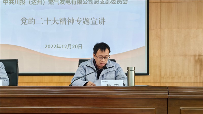 為深入學(xué)習(xí)宣傳貫徹落實(shí)黨的二十大精神,12月20日,達(dá)州氣電黨總支書記、總經(jīng)理蔡宏開展黨的二十大精神專題宣講。公司領(lǐng)導(dǎo)、中層干部、全體黨員、入黨積極分子參加會議。
