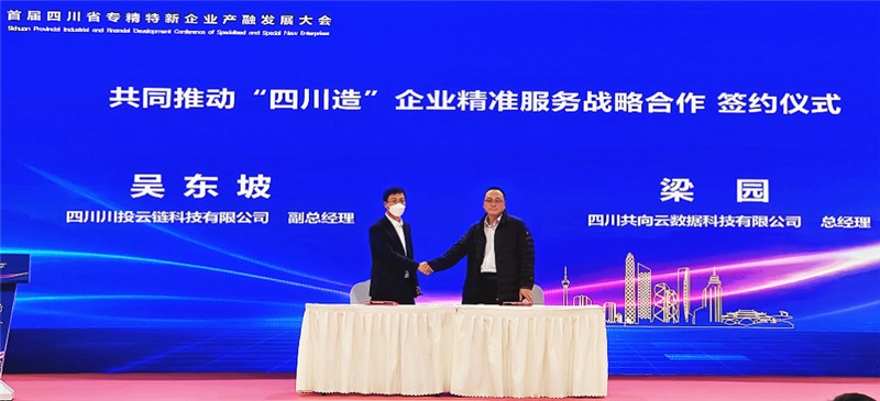川投云鏈旗下“撮合拍供應鏈金融智慧服務平臺”致力于供應鏈金融科技助力中小企業(yè)專精特新高質量發(fā)展,四川省貿促會打造的“四川省數字貿易平臺”是四川省經貿領域的重要數據平臺和智庫,致力于為四川企業(yè)的經貿數字化和外向型發(fā)展服務,平臺由共向云數據負責運營。根據戰(zhàn)略合作協(xié)議,雙方將發(fā)揮各自平臺、技術、資源優(yōu)勢,為企業(yè)提供普惠金融支持、資源對接、商法服務、以及數字化轉型解決方案等,促進更多的“專精特新”企業(yè)涌現(xiàn)出來、走得更遠。