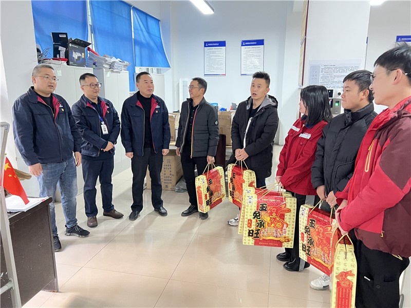 公司黨總支副書記、董事會秘書、工會主席鄧勇代表公司在銀江水電站“愛心驛站”慰問參建單位,向長江設計代表處、貴陽院監(jiān)理部、水電五局項目部、水電七局項目部、廣東源天項目部等16家參建單位一線職工送上春節(jié)慰問和臘肉制品禮盒套裝等慰問物資,向一線建設者致以親切的問候和誠摯的新春祝福,感謝大家對建設銀江水電站的艱辛付出和奉獻,叮囑大家要時刻銘記安全的重要性,做好春節(jié)值班值守工作。
