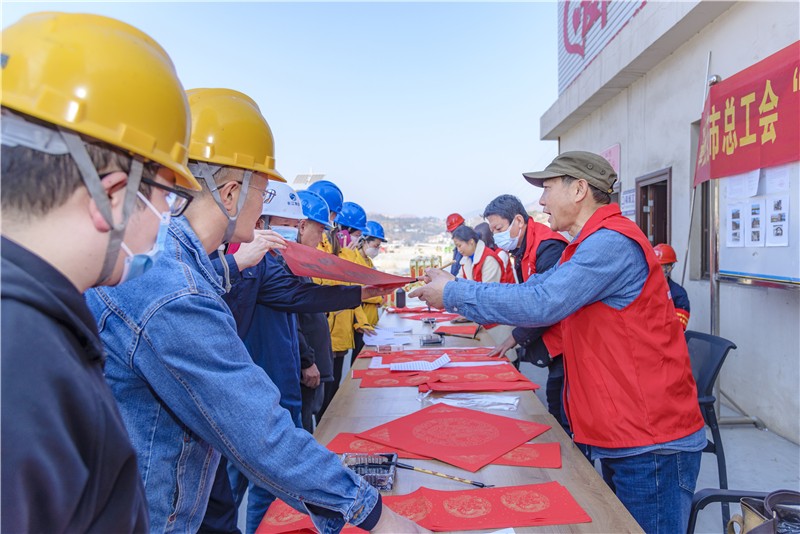 1月17日下午,公司工會與攀枝花市總工會聯(lián)合組織開展了送萬福、送慰問、宣傳消防安全等活動。邀請書法大師為春節(jié)期間堅守在工程建設一線職工繪“福”字、寫春聯(lián)。在“愛心驛站”活動現(xiàn)場,鋪著紅色春聯(lián)紙的桌子呈一字型排開,書法大師們帶著滿滿的誠意與祝福,揮毫潑墨,大家手捧一副副精美的春聯(lián),一個個火紅喜慶的“福”字以及新春大禮包,喜悅之情溢于言表。