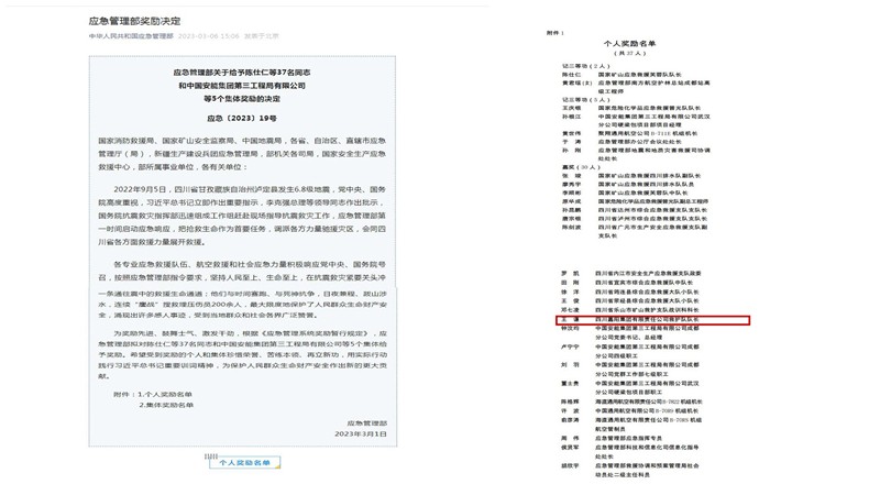 近日,中華人民共和國應(yīng)急管理部[2023]19號(hào)文件下發(fā),對(duì)瀘定抗震救災(zāi)表現(xiàn)突出的個(gè)人和集體進(jìn)行獎(jiǎng)勵(lì),嘉陽集團(tuán)礦山救護(hù)隊(duì)隊(duì)長王謙榜上有名。