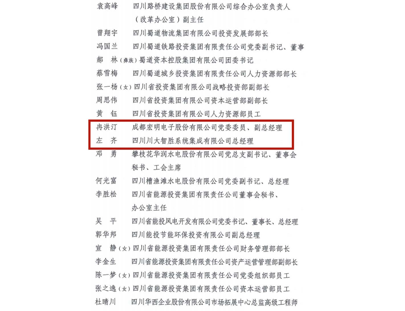 近日,省國資委、省人力資源和社會保障廳對全省國資國企改革發(fā)展99個先進集體和198名先進個人進行了表彰。川投信產(chǎn)所屬宏明電子獲評“四川省國資國企改革發(fā)展工作先進集體”,宏明電子黨委委員、副總經(jīng)理冉洪汀與智勝集成總經(jīng)理左齊獲評“四川省國資國企改革發(fā)展工作先進個人”。