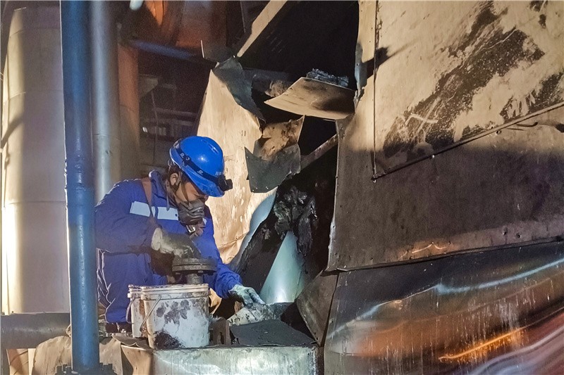 因公司實(shí)際燃用的煤炭熱值遠(yuǎn)低于設(shè)計(jì)煤種,磨煤機(jī)長(zhǎng)期需要超設(shè)計(jì)出力運(yùn)行,制粉系統(tǒng)設(shè)備的可靠運(yùn)行對(duì)機(jī)組接帶負(fù)荷能力影響較大,極易因某一臺(tái)磨煤機(jī)出力不足而導(dǎo)致機(jī)組負(fù)荷欠發(fā)的情況。為提高制粉系統(tǒng)設(shè)備的運(yùn)行可靠性,保證機(jī)組穩(wěn)定接帶負(fù)荷,公司設(shè)備維修部利用2號(hào)機(jī)組停機(jī)消缺期間,結(jié)合日常運(yùn)行中暴露出來(lái)的薄弱點(diǎn)位,針對(duì)性制定了詳盡的檢修措施和計(jì)劃。先后完成了給煤機(jī)皮帶及清掃電機(jī)刮板檢查更換、落煤管減薄處補(bǔ)焊、磨煤機(jī)絞龍支撐檢查補(bǔ)焊、分離器清渣及漏粉點(diǎn)堵漏、防爆門(mén)定期更換、煤粉管漏粉點(diǎn)補(bǔ)焊等多項(xiàng)作業(yè)面狹窄、施工難度較大的檢修工作任務(wù),最大限度提高了制粉系統(tǒng)設(shè)備的健康水平。